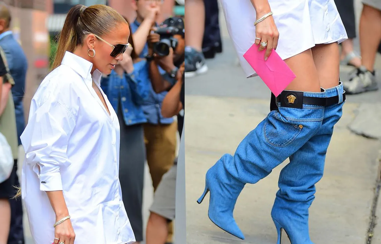 हॉलीवुड सिंगर और एक्ट्रेस न्यूयार्क में रात को हाई थाई डेनिम वर्साचे बूट्स में नजर आईं। जो देखने में लग रहा था कि जैसे उन्होंने घुटनों के नीचे से जींस पहन रखा है। लेकिन जब आप उनके पास जाएंगे तो असलियत सामने आ जाएगी।