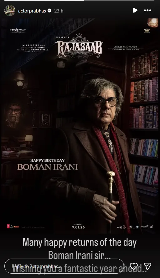 प्रभास के शानदार प्रदर्शन और बोमन ईरानी के शानदार अंदाज़ के साथ, The RajaSaab सुर्खियों में है। 2026 की सबसे बड़ी रिलीज़। और जैसे ही फैंस फिल्म का इंतज़ार कर रहे हैं, बोमन ईरानी का बर्थडे पोस्टर उन रहस्यों से पर्दा उठाने के लिए एकदम सही है जिन्हें वह स्क्रीन पर उजागर करेंगे। (The Rajasab makers birthday surprise)