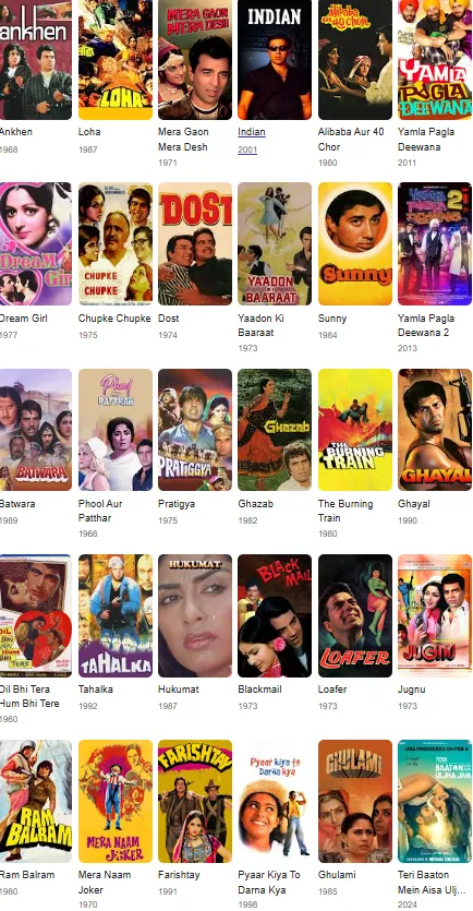 A: शोले, सीता और गीता, धरम वीर, चुपके चुपके, यादों की बारात, फूल और पत्थर, यमला पगला दीवाना जैसे कई सुपरहिट नाम शामिल हैं।