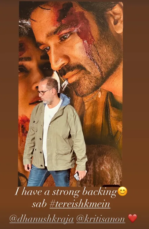 भूषण कुमार के सपोर्ट में बनी आनंद एल राय की तेरे इश्क में के ट्रेलर ने पहले ही उत्साह की लहर पैदा कर दी है और एक ऐसी इमोशनल, इमर्सिव दुनिया का माहौल बना दिया है जिसमें दर्शक कदम रखने का इंतज़ार नहीं कर सकते। इस बढ़ती चर्चा के बीच, आनंद एल राय ने एक सिंपल लेकिन दिल को छू लेने वाली इंस्टाग्राम स्टोरी शेयर की, जिसमें धनुष और कृति के फिल्म पोस्टर के साथ उनकी एक कैंडिड तस्वीर है, जो उनके पीछे बैकग्राउंड में एकदम सही फ्रेम में लगी है।
