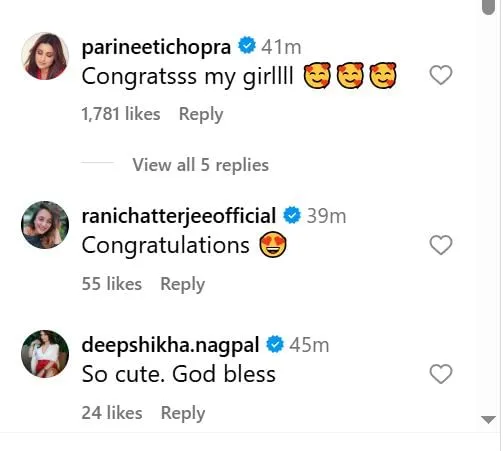 फैंस और कई सितारों ने उन्हें बधाई दी. इसमें परिणीति चोपड़ा , शिल्पा शिरोडकर, लॉरेन गॉटलिब और कई अन्य शामिल हैं.