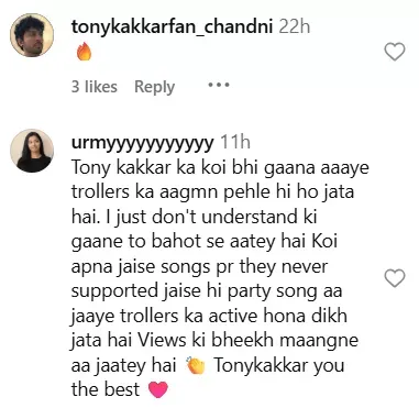 टोनी कक्कड़ ने कहा कि वे ट्रोलिंग का मज़ा ले रहे हैं और पॉप म्यूज़िक में ट्रोल होना आम बात है. उन्होंने यह भी कहा कि ऐसे गानों से होने वाली कमाई से वे अर्थफुल और इमोशनल म्यूज़िक बना पाते हैं.