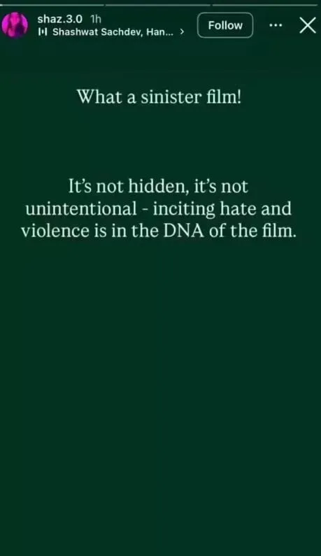 उत्तर:Shazia Iqbal ने इंस्टाग्राम पर एक मजबूत संदेश शेयर किया, जिसे सोशल मीडिया यूजर्स ने एक फिल्म पर अप्रत्यक्ष तंज माना.